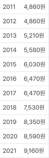 대한민국 2000년부터 지금까지 최저임금에대해 알아보겠다